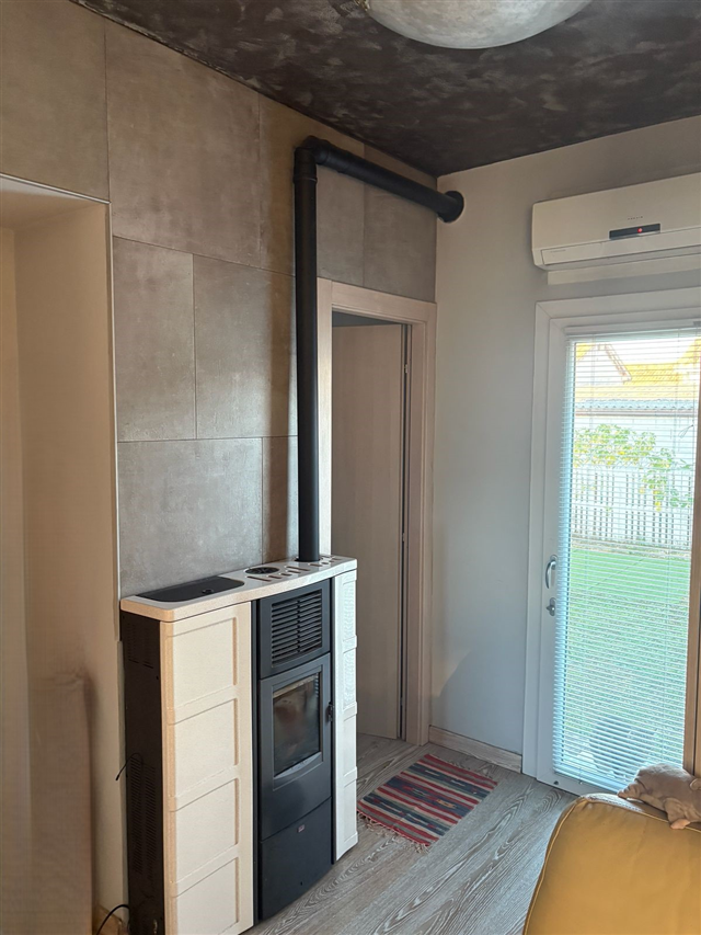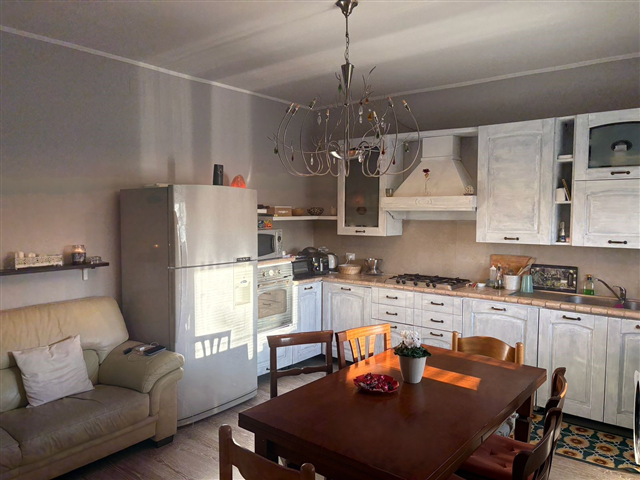 Porzione di villetta in bifamiliare recentemente ristrutturata, disposta al piano terra e con area cortiliva indipendente. L'ingresso da sulla zona giorno ben illuminata dove troviamo l'ampia cucina che, insieme alla parete con armadi su misura, la rendono completa e funzionale; le due camere e il bagno ben organizzato completano gli spazi abitativi che riscaldati dal calore della stufa a pallet rendono l'ambiente molto intimo e accogliente.